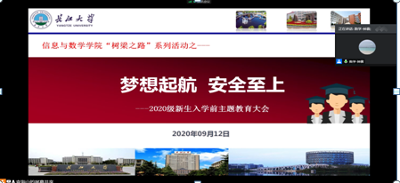 (通讯员 丁伟怡)“疫”路逐梦,情牵学子。为确保2020级新生入学工作有序开展,帮助新生提前熟悉线下报到流程,学习疫情防控要求,增强安全意识。公司特于9月12日下午3时召开“梦想启航 安全至上”新生入学前主题教育线上会议。公司党委副书记袁海山、辅导员钟赛、2020级全体新生参加本次会议。会议由钟赛老师主持。
