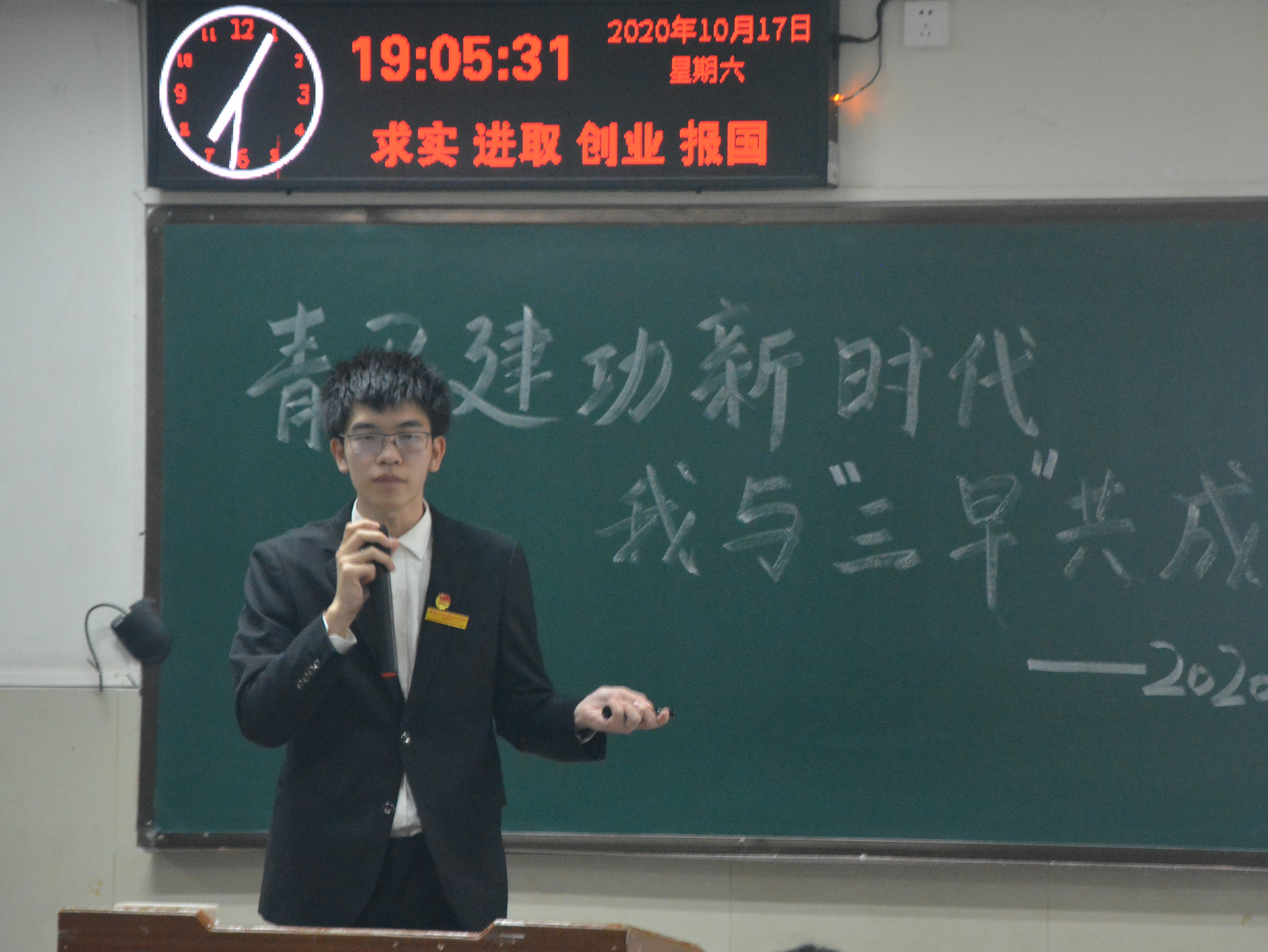 活动最后,青马班员工辅导员朱佐民发表自己的感想,他表示青马班是一个非常优秀的团体,加入青马班会给自己更多的历练,向更好的自己发起挑战,并呼吁大家成为马克思主义继承者,踊跃报名参加第十五期青马班。