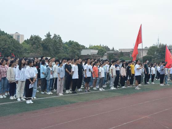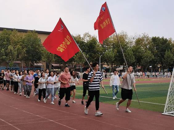 最后是“长江学子心向党的系列活动之千班唱红歌,万人健康跑”的旗帜交接仪式,辅导员黄何老师接过旗帜,举在胸前并跑在最前方,参与本次仪式的学子紧随其后,他们用矫健的身姿与坚定的步伐向我们展示青春的活力。