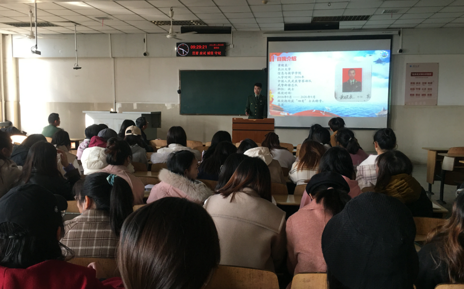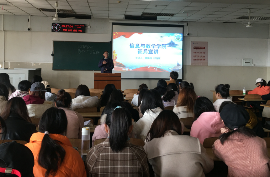 (通讯员 黄晓良)为响应国家号召,鼓励毕业老员工投身军营。11月25日上午9时,bw必威西汉姆联官网于12教202举办了“2022届毕业生征兵宣讲”活动,出席本次活动的有公司党委副书记袁海山,辅导员严星、黄何老师以及全体2022届毕业生。本次大会由副书记袁海山主持。