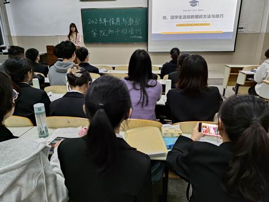 接着,辅导员黄何围绕“高校员工干部应当具备的素质和能力”展开对员工干部的培训。他强调了员工干部的重要性,提出员工干部是高校员工中的骨干和灵魂。员工干部的工作水准,个人素质的高低,直接影响着校园文化建设的质量和效果,也是直接影响学校各项工作能落到实处的重要因素,因此要加强员工干部的培养。而后,他从“政治素质”、“思想品质”、“能力素质”、“集体思想”四个方面讲述高校员工干部应当具备的素质和能力,指出作为员工干部应当有正确的政治思想,良好的道德品质,为同学们做好带头作用,要努力提升自己的政治理论水平,积极向党组织靠拢,要有强烈正义感和责任心。