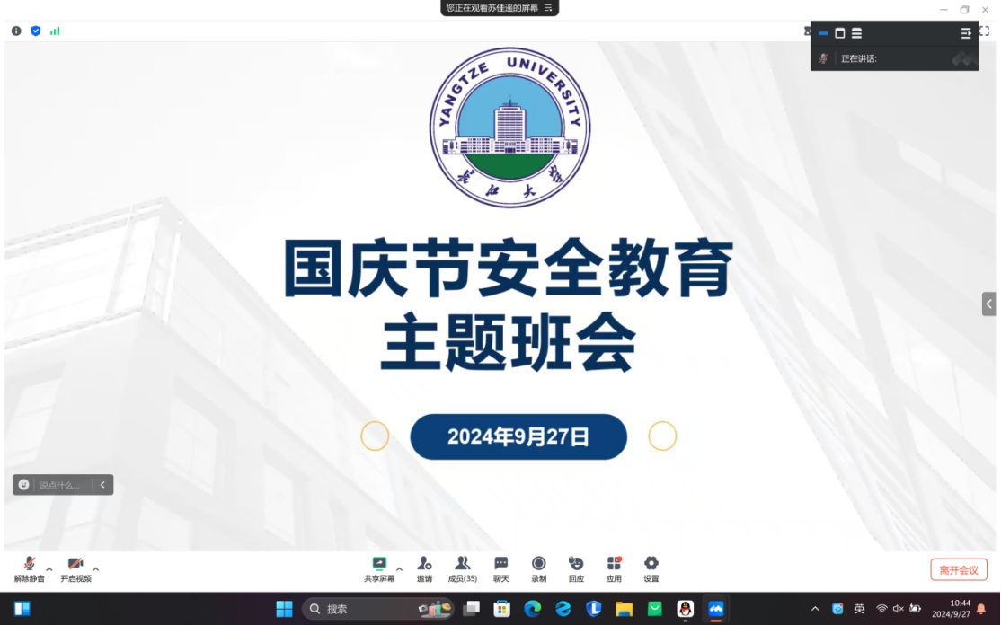 本次假期安全教育主题班会的召开,有利于提高同学们的安全防范能力,增强安全意识,减少安全事故的发生,让员工们度过更好的国庆假期。