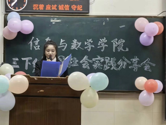 (通讯员 张诗雨)为了深入贯彻党的教育方针,引导公司学子在社会实践的广阔舞台上锤炼品质、增长才干,公司于10月11日晚上七点在12教104举办三下乡暑期社会实践分享交流会,参会人员有院团委书记黄何、“抗大·树梁”数学科普志愿服务队成员、全体大一大二员工。