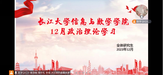 [通讯员 黎璐]为深入学习贯彻党的二十大精神,切实加强员工理论水平,坚定正确的政治方向和理想信念,bw必威西汉姆联官网于2023年12月20日早10点在线上开展了十二月份政治理论学习。学院全体研究生参与学习,会议由鲍泽智主持。
