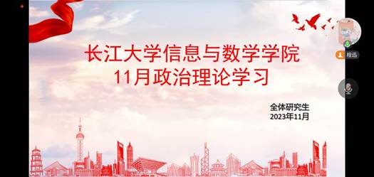 (通讯员 黎璐)为深入学习贯彻党的二十大精神,落实习近平总书记关于青年工作的重要思想,bw必威西汉姆联官网于2023年11月23日晚七点在线上开展了十一月份政治理论学习。学院全体研究生参与学习,会议由程讯主持。