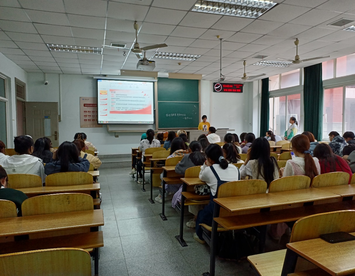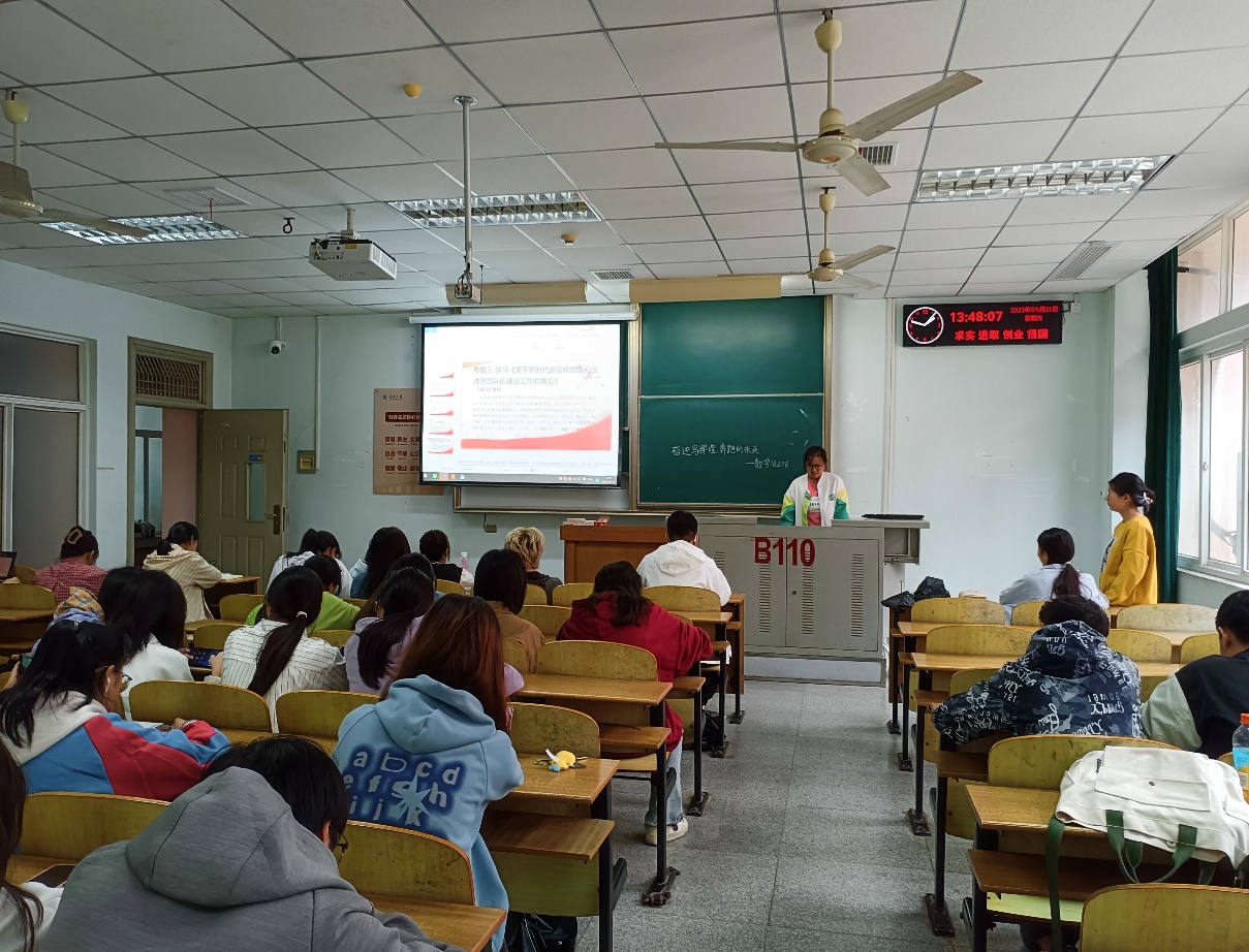(通讯员 朱昊)为深入学习宣传贯彻党的二十大精神,着力提升团的引领力、组织力、服务力和大局贡献度,全面深化改革,全面从严治团,不断保持和增强政治性、先进性、群众性。数学12206班围绕“奋进写辉煌,奔跑向未来”的主题,于2023年9月21日14点在13教B310教室开展九月团会活动。本次会议由团支书朱昊主持,组宣委员徐玲慧作为主讲,全班同学共同参与学习。