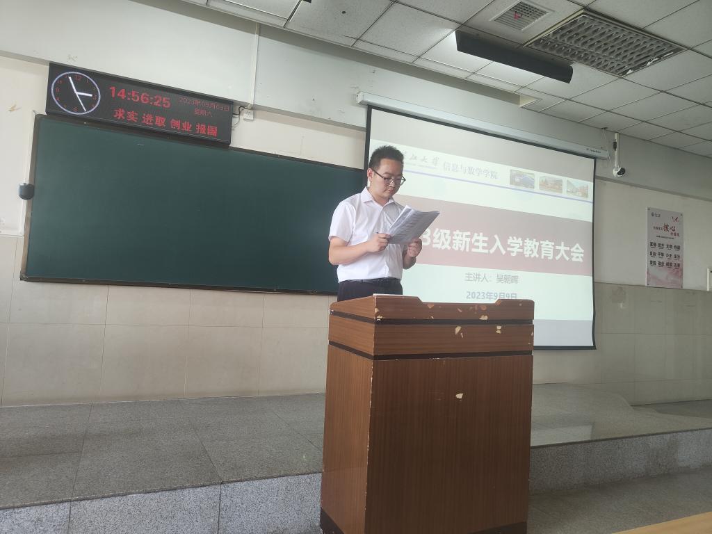 (通讯员 吴朝晖)2023年9月9日下午15时,bw必威西汉姆联官网在12教402召开2023级本科新生入学教育大会。本次班会围绕本科生的日常管理、校纪校规、防诈骗、心理健康教育等方面展开,学院全体2023级本科生参会,会议由新生辅导员吴朝晖主持。