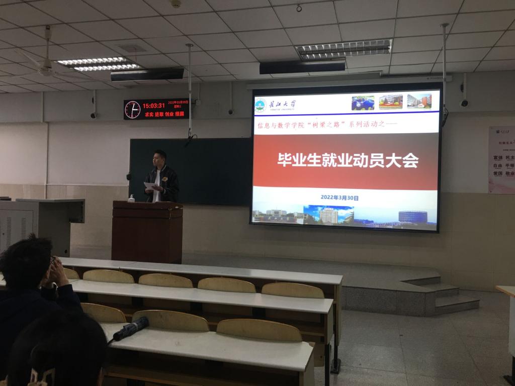 大会伊始,辅导员黄何就目前毕业生就业现状作简要说明,给大家详细讲解了有关就业签约等相关信息,鼓励大家不要逃避就业,勇敢面对。他指出:努力不一定成功,但不尝试一定会失败。
