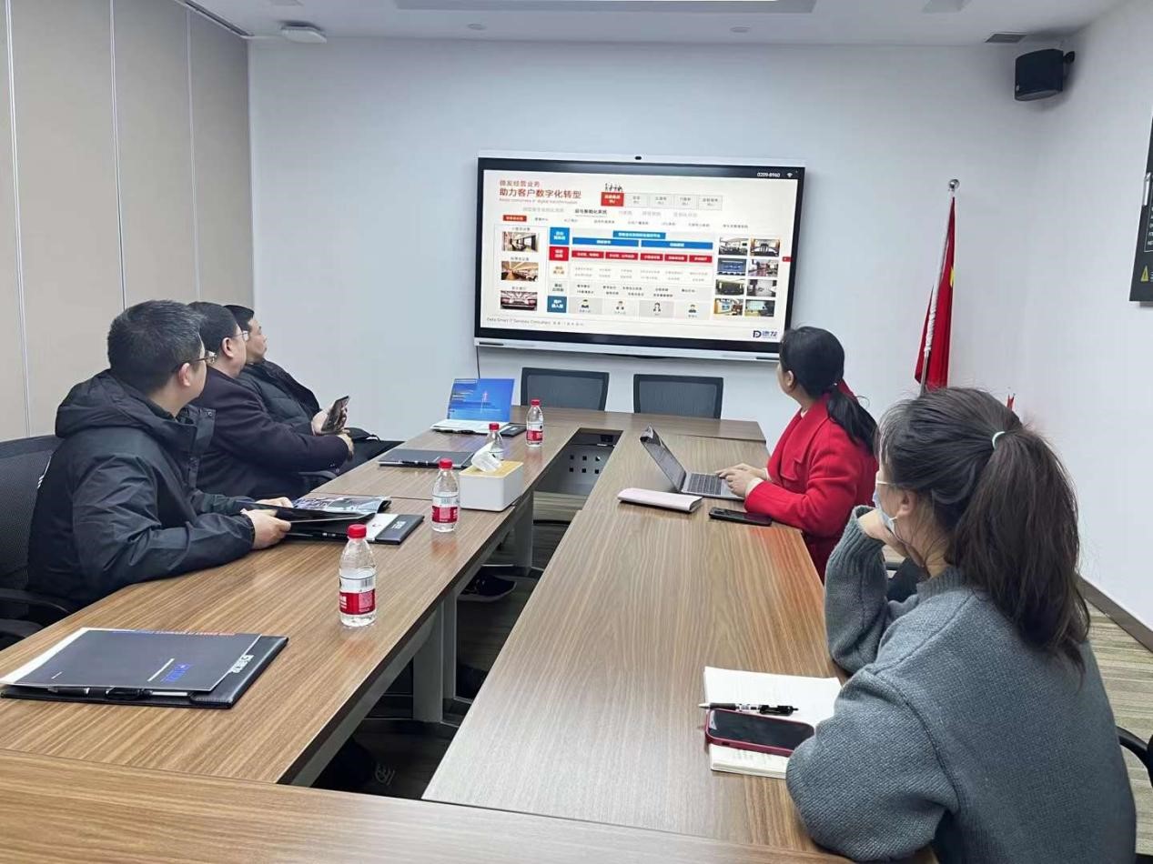 在武汉德发集团,企业负责人详细介绍了公司发展历程、企业文化和在建重大项目,并就大数据、人工智能、云计算等领域与学院领导探讨合作方向。随后,学院领导深入企业一线,参观了大数据和云计算实验室。在实地参观的过程中,学院领导详细了解了企业的创新技术和管理运营模式,了解行业发展的最新趋势。