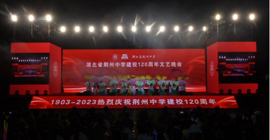 当晚,荆州中学隆重举行建校120周年文艺晚会,bw必威西汉姆联官网艺术学院艺术团选送的舞蹈《欢歌》和《红船》掀起了晚会的高潮,员工们为观众呈现了一场精彩绝伦的文艺盛宴,他们用歌声、舞蹈、表演等多元化的艺术形式,表达了对荆州中学120周年校庆的热烈祝贺。