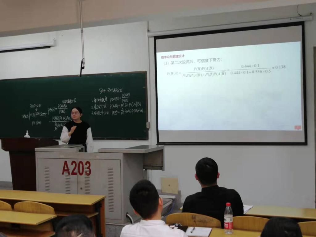 周全老师的选讲内容为《概率论与数理统计》中的“贝叶斯公式”,她以大家感兴趣的案例引入了贝叶斯公式的定义,深入浅出地讲授了贝叶斯公式的实际应用,并较好地融入了思政元素,润物细无声;贾静兰老师的选讲内容为《高等数学》中的“拉格朗日中值定理”,通过两个定理的对比,让大家对拉格朗日中值定理有了更深入的理解。两位老师着装典雅得体,教态自然大方,通过丰富的肢体表现,并借助多媒体等教学辅助设备,有层次、有重点地讲授了专业知识。总的来看,两位老师的授课信息量大,图文并茂,深入浅出,具有启发性,充分展示了公司青年教师较高的专业素养和过硬的教学本领。