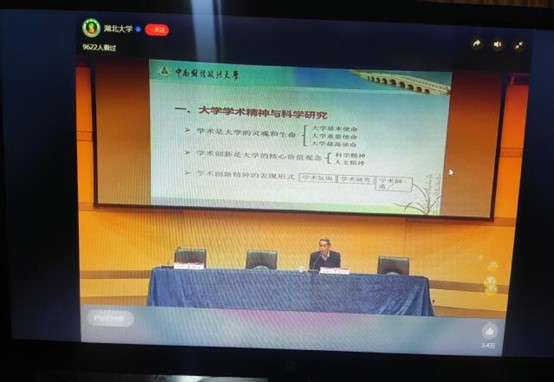报告会于2021年12月14日下午3:00开始,主会场设在湖北大学。学院在做好疫情防控的情况下积极组织师生代表一起在8号教学楼406会议室观看了网络直播。