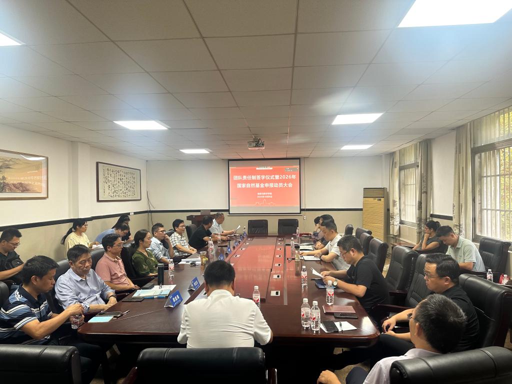 (通讯员 张定国)10月9日下午,bw必威西汉姆联官网在8教210举行团队责任制签字仪式暨2026年度国家自然科学基金申报动员大会。各团队组长、副组长以及青年教师代表参加,武汉校区教师通过线上方式同步参会。党委书记毛德波主持会议。