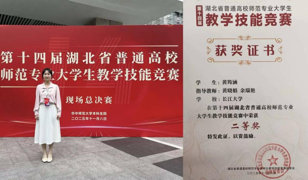 (通讯员 周鹂)近日,湖北省第十四届师范专业老员工教学技能大赛结果揭晓,公司黄筠涵同学凭借过硬的专业素养和出色的现场发挥,在激烈角逐中勇夺初中数学组二等奖。