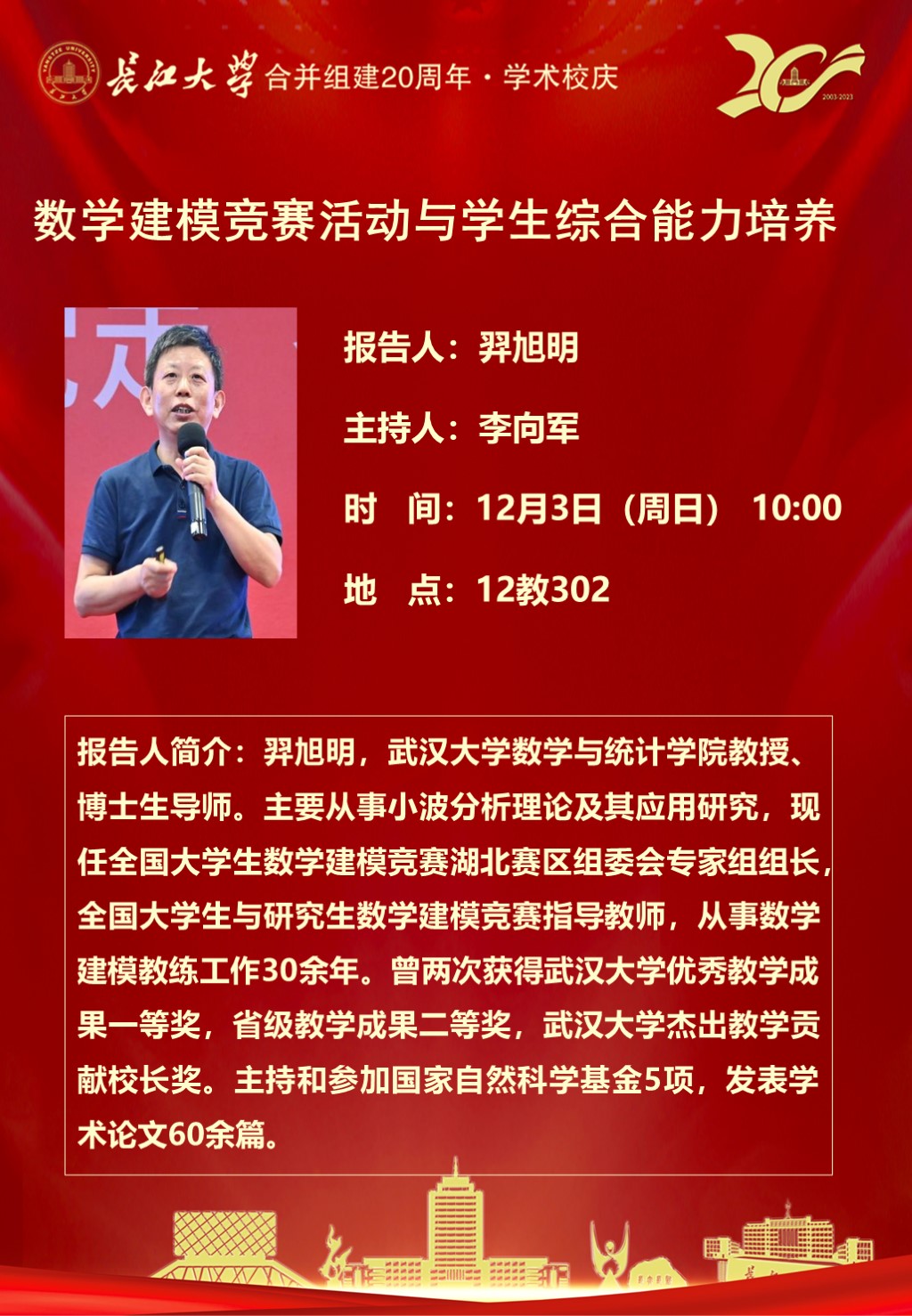 报告人 羿旭明 武汉大学教授、博士生导师 报告时间 2023年12月3日10:00